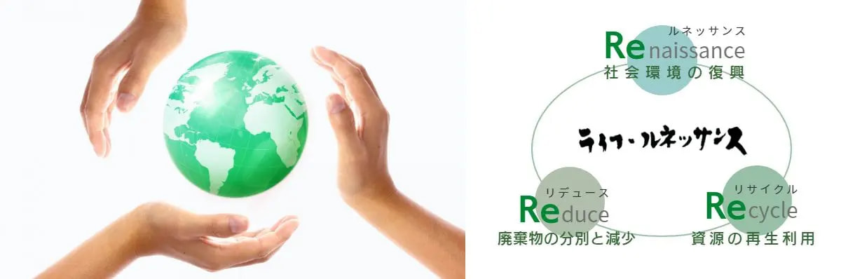 「有限会社ライフ・ルネッサンス」は、日本の美しい自然を守るため、未来の子供たちのため、企業の生産活動における環境対策をサポートするため、産業廃棄物運搬収集・一般廃棄物運搬収集業を通して、「資源の再利用」・「資源の有効活用」を推進し、日々地域で活動しています。また、地域社会貢献としてボーイスカウト岡崎1団に協力し、子供達に環境教育をしています。